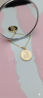 مدالی طلا دو طرف طرح، ساختهشده از طلای ۱۸ عیار با طراحی خاص و کاربردی. هر دو سمت مدال دارای نقش متفاوت است تا بسته به استایل، ظاهر دلخواه خود را انتخاب کنید.