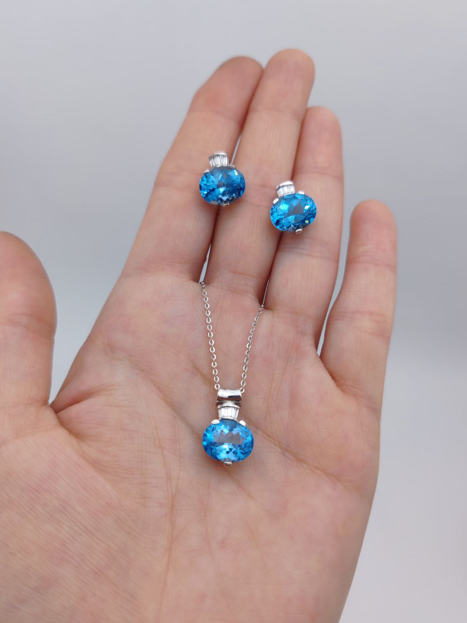 نیمست طلا سفید با برلیان و توپاز سوییس